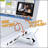 これって、USB2.0に対応したワンセグテレビチューナーでPCのUSBにつなぐだけで見られるってんだから、ノートPCを持ち込める場所であれば